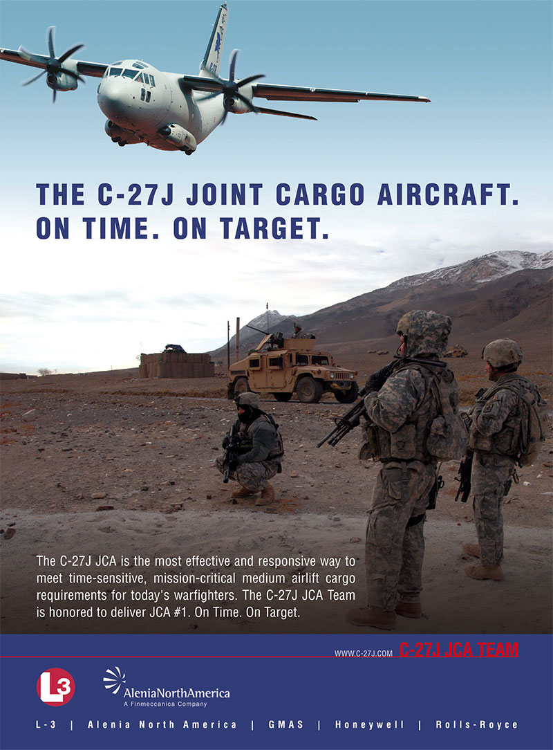 "A friend contacted me about a picture he saw while reading the May 2009 issue of Air Force magazine (Journal of the Air Force Association - He's a member) when he saw on page 151 an ad for L3 Communications/Alenia C-27J Joint Cargo Aircraft. I looked at the picture he sent me and there I was, standing with two other soldiers. I was hoping you would be able to send me a copy of that issue or maybe a copy of the ad. Most soldiers never find themselves in a situation where their lives depend on the support of others. After 100 fire fights, one helo rescue, and the successful rescue mission of a downed Blackhawk carrying three U.S. Senators (one of those Senators is now the Vice President of the United States). Believe me when I tell you I do! When my gear works when its needed most, I know that men and women like your team have done all they could to help me. Thank you again and God speed.